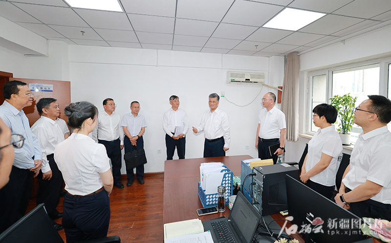6月16日,自治区党委书记马兴瑞在乌鲁木齐市纪委监委,详细了解群众身边不正之风和腐败问题集中整治进展成效。石榴云/新疆日报记者崔志坚摄