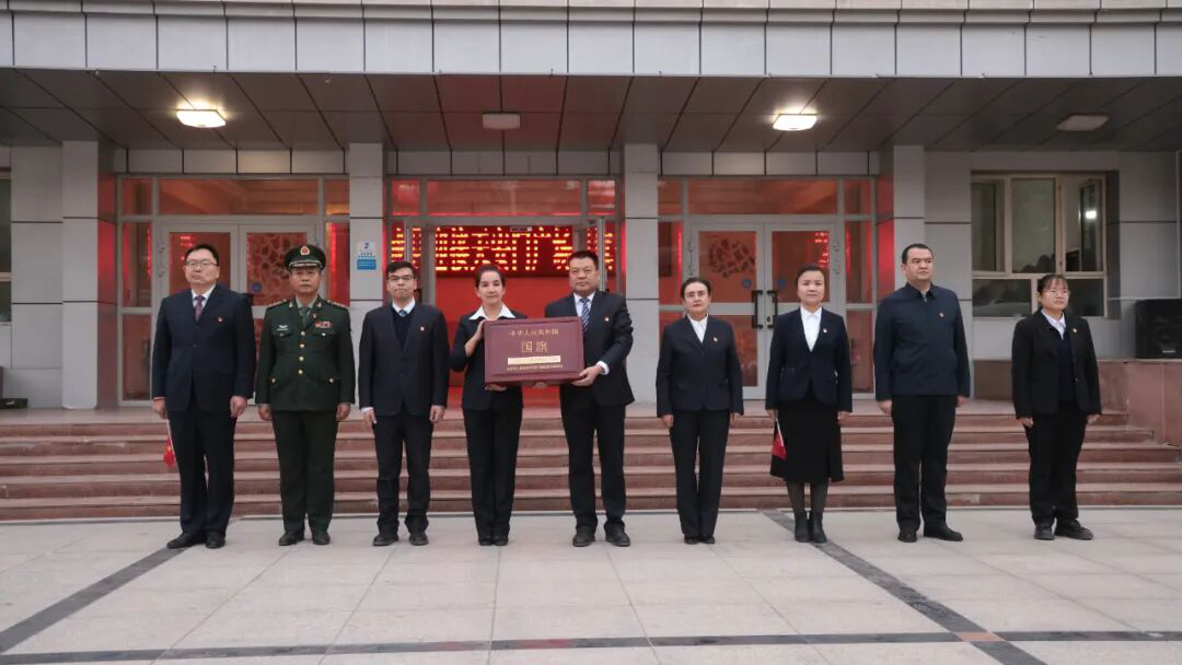 程龙强调,国旗,是国家的象征,是民族尊严与精神的凝聚。在天安门广场升起过的每一面国旗,都承载着历史的重量、国家的荣光和人民的期盼。这面曾在天安门广场上高高飘扬、见证过全国人民敬礼、承载着国家尊严的国旗,跨越万里来到新疆叶城,既是对我们赓续红色血脉、传承爱党爱国精神的崇高褒奖,更是激励我们勇担使命、砥砺奋进的有力鞭策。希望全校师生精心保管、规范展陈国旗,讲述好这面国旗与叶城的特殊情缘,将这面国旗作为开展爱国主义教育、传承红色基因的重要载体,作为铸牢中华民族共同体意识、团结凝聚人心的力量源泉,作为激励广大学子勇担时代使命、矢志奋斗追梦的精神灯塔,将国旗承载的精神力量内化于心、外化于行,锚定教育强国建设目标,擎旗逐梦、铸魂育人,努力将红军中学建设成为传承红色基因的坚强阵地、培育时代新人的红色摇篮,让爱国主义伟大旗帜在校园高高飘扬、永远飘扬。