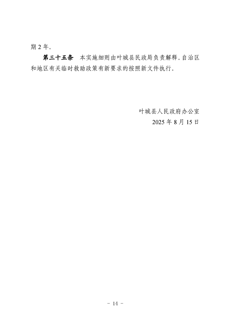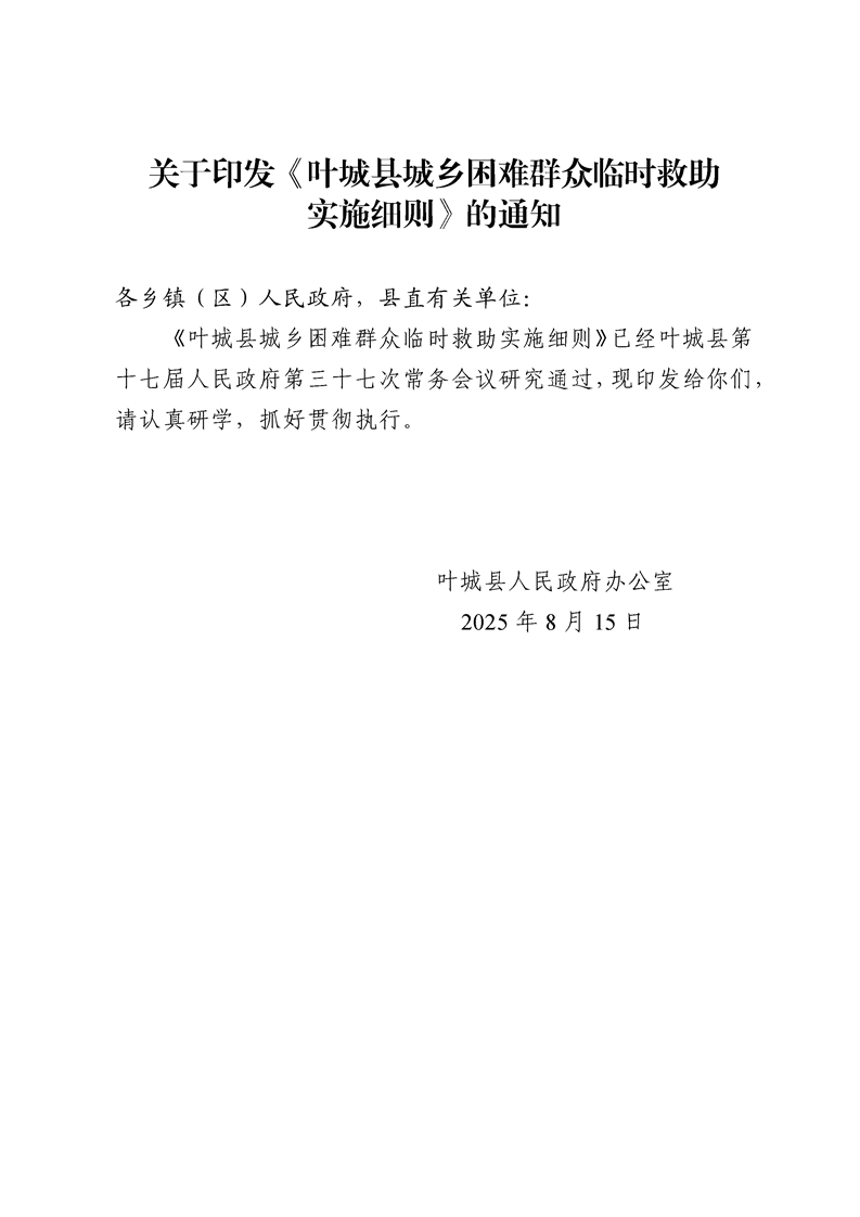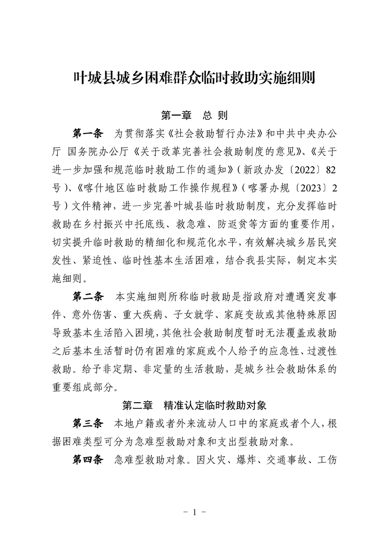 叶政办规〔2025〕2号 关于印发《叶城县城乡困难群众临时救助实施细则》的通知