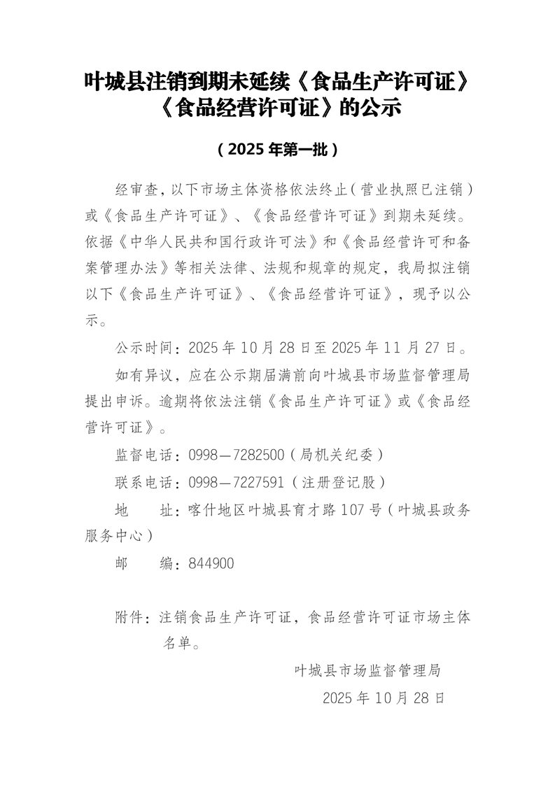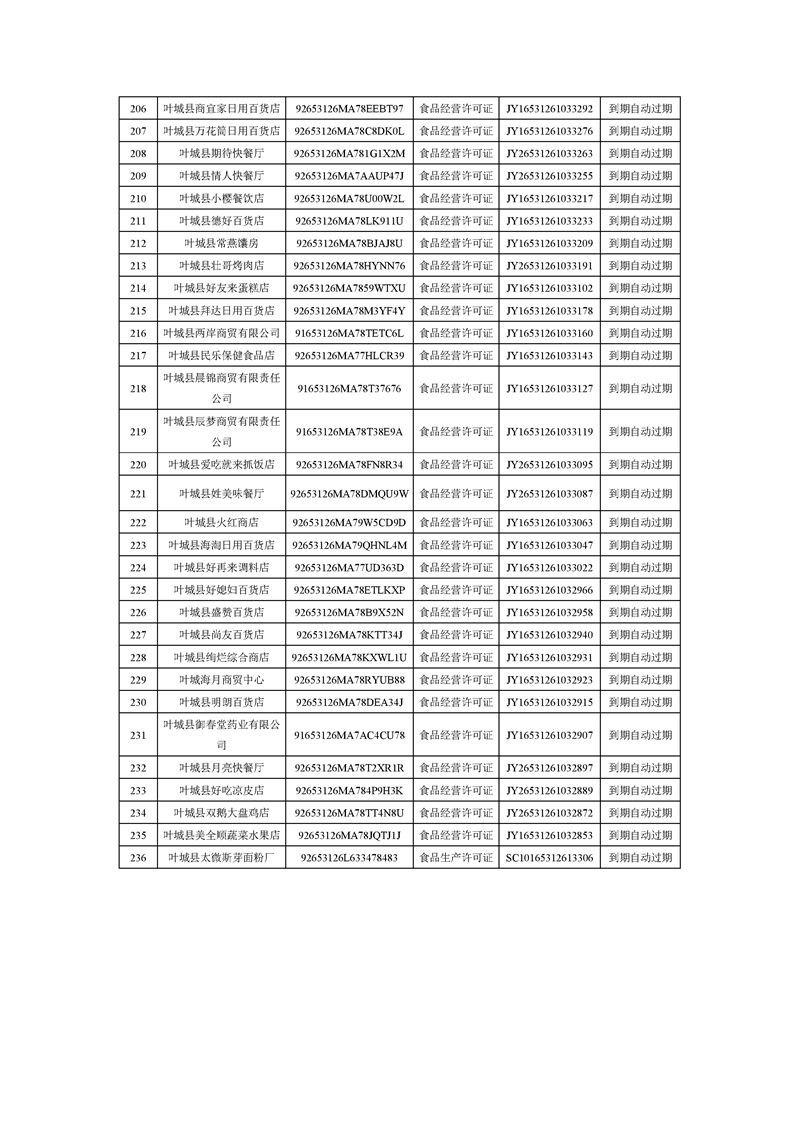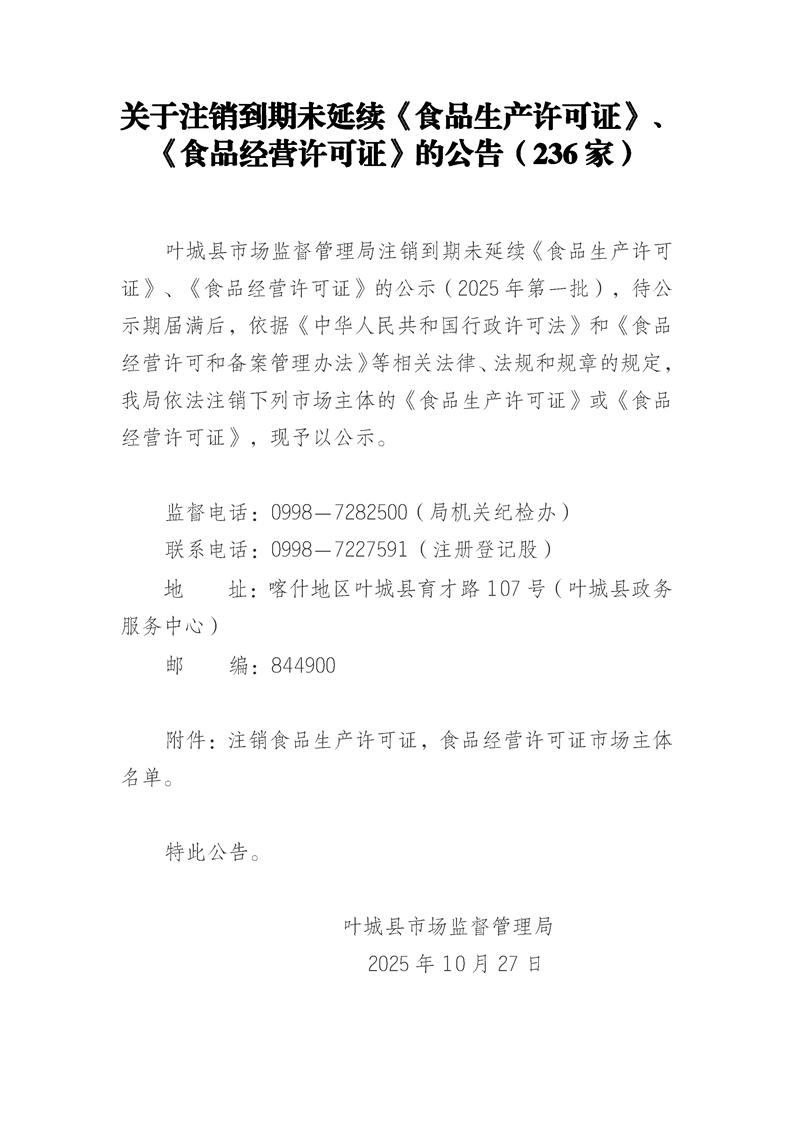 关于注销到期未延续《食品生产许可证》、《食品经营许可证》的公告(236家)