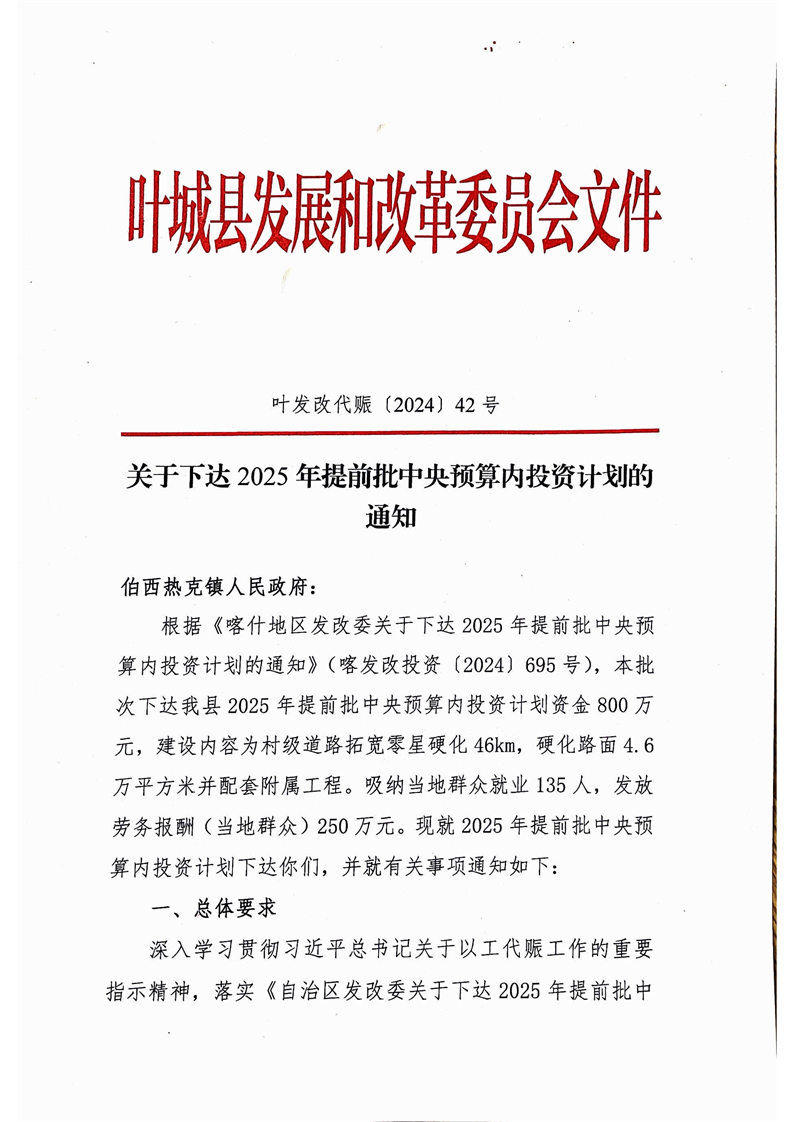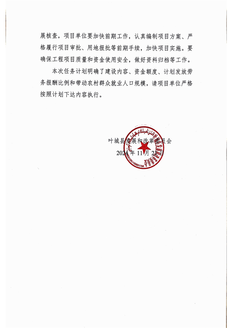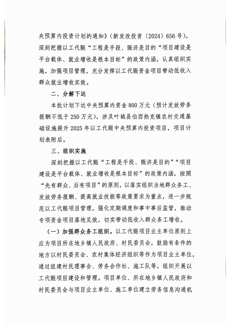 附录:叶城县2025年提前批以工代赈中央预算内投资计划表