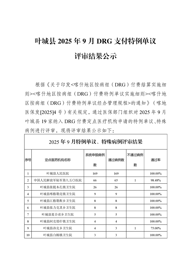 叶城县2025年9月特例单议、特殊病例评审结果公示