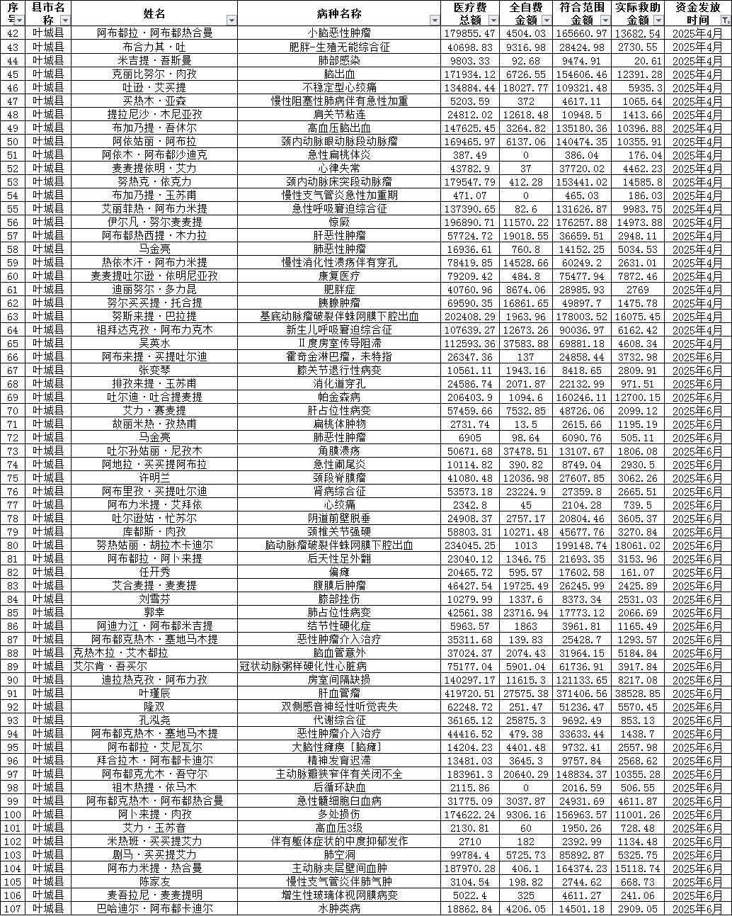 叶城县2025年第二季度城乡居民医疗救助情况公示