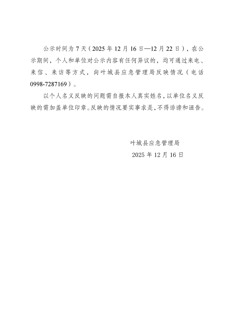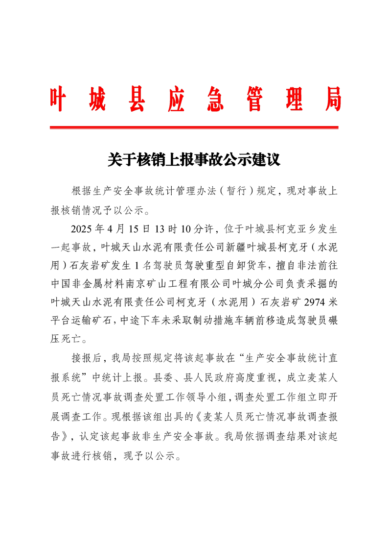 关于叶城县4.15事故核销上报的公示