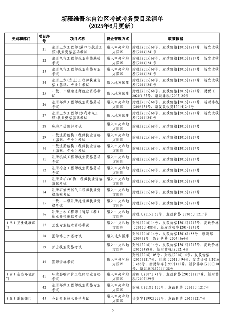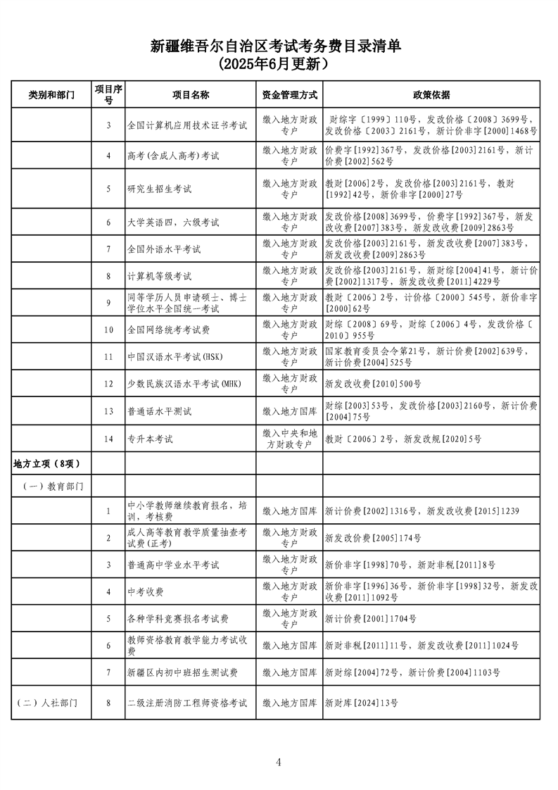 新疆维吾尔自治区考试考务费目录清单(2025年6月更新)