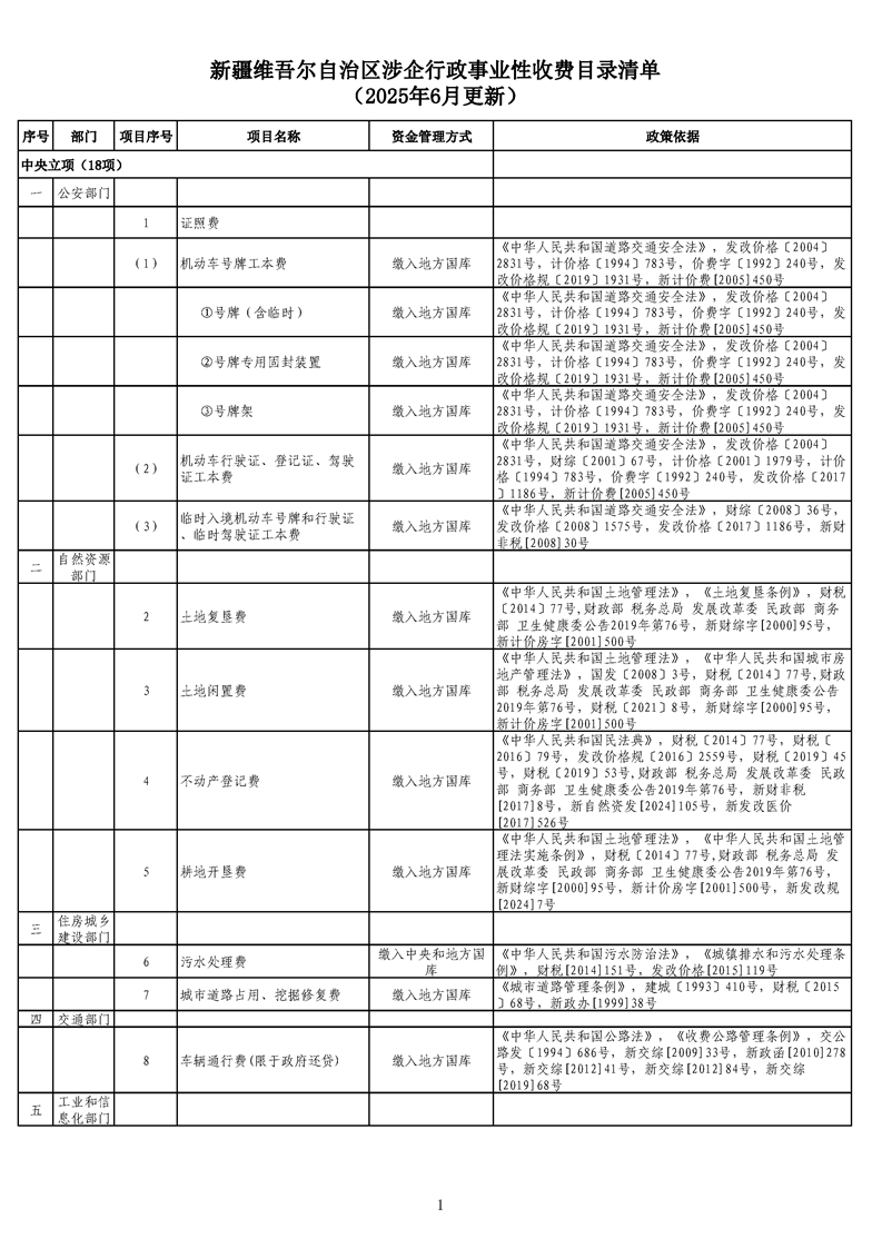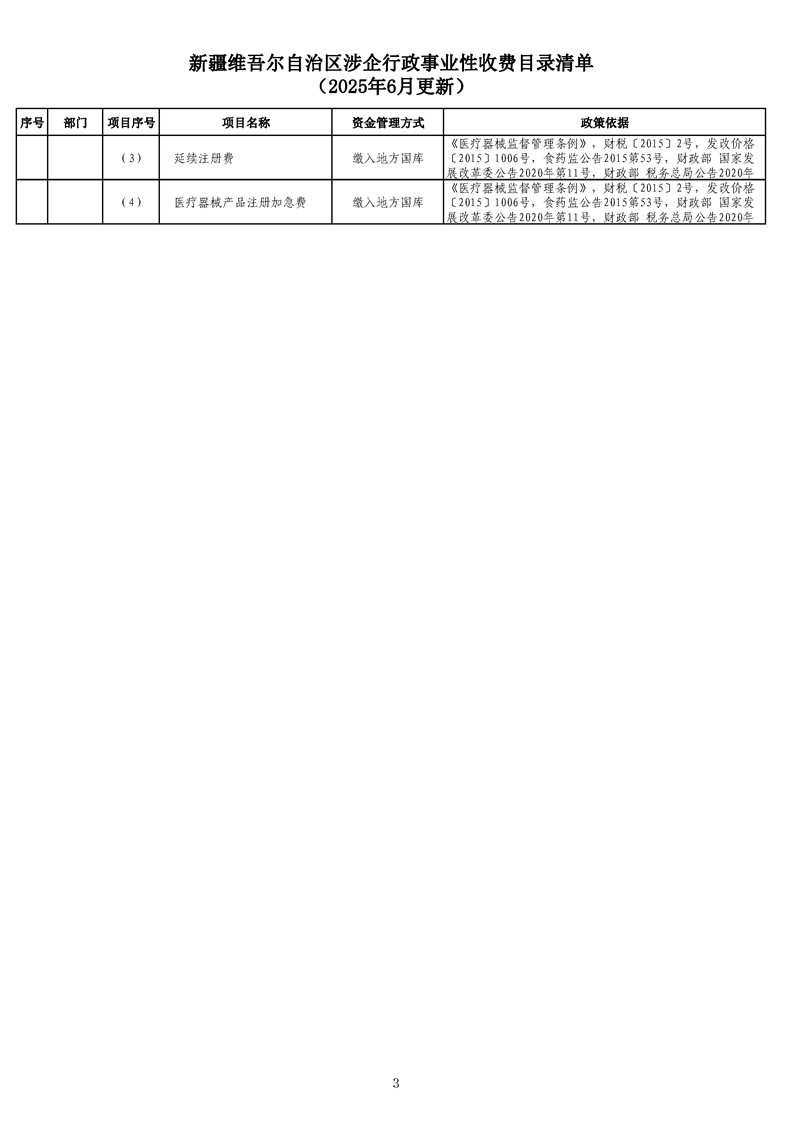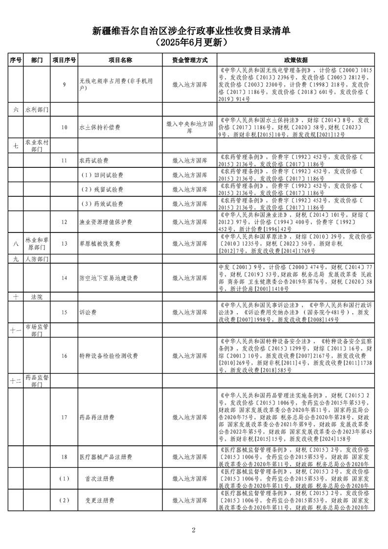 新疆维吾尔自治区涉企行政事业性收费目录清单(2025年6月更新)