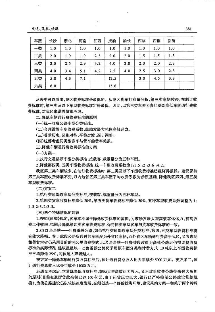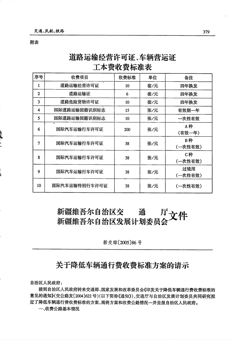 新交综〔2005〕86号 关于降低车辆通行费收费标准方案的请示
