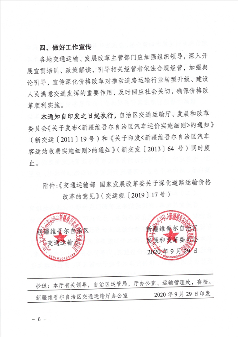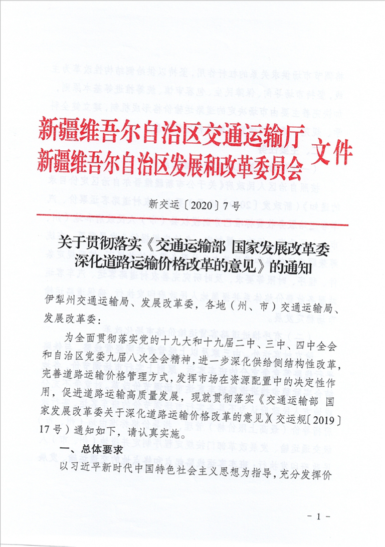 新交运【2020】7号 关于贯彻落实《交通运输部 国家发展改革委深化道路运输价格改革的意见》的通知