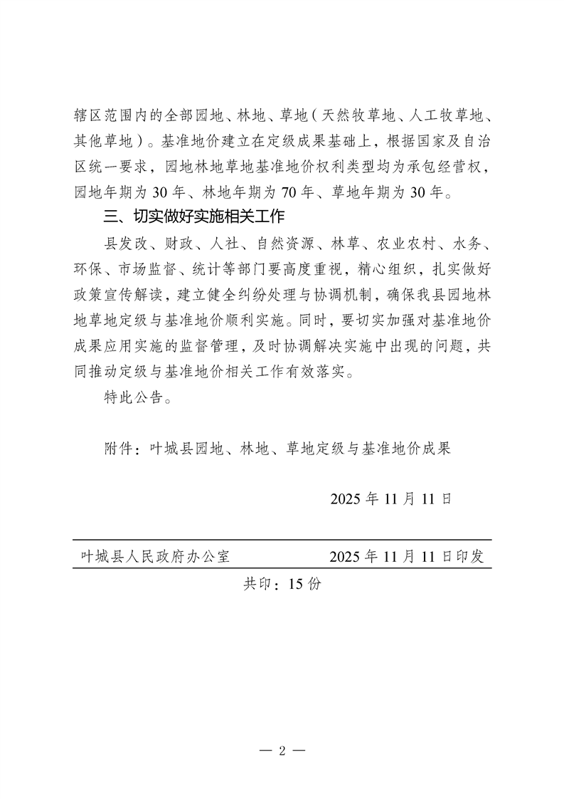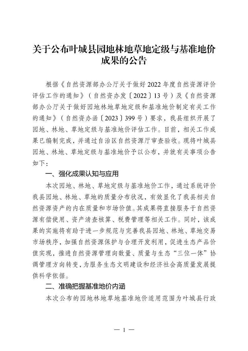 关于公布叶城县园地林地草地定级与基准地价成果的公告