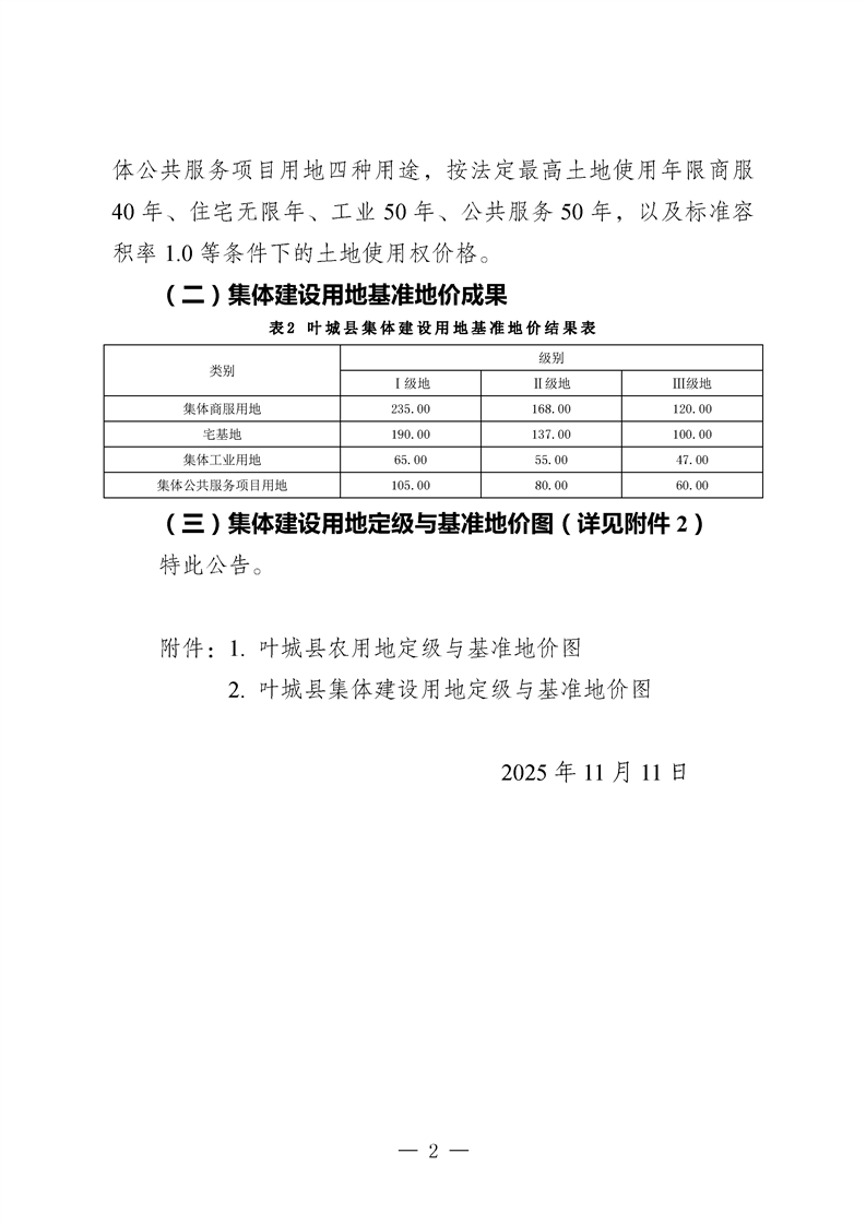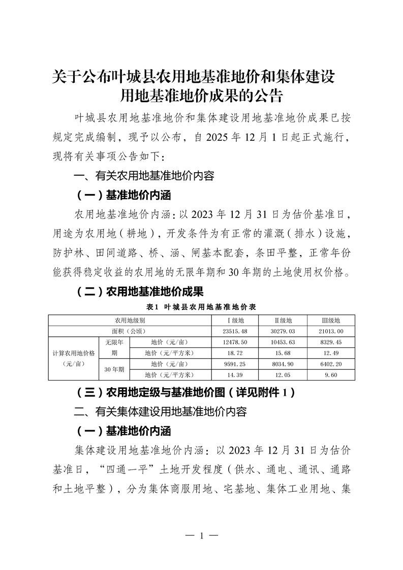 关于公布叶城县农用地基准地价和集体建设用地基准地价成果的公告