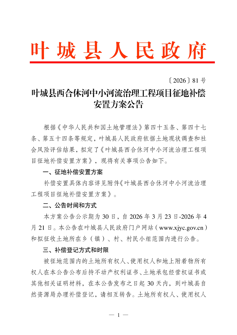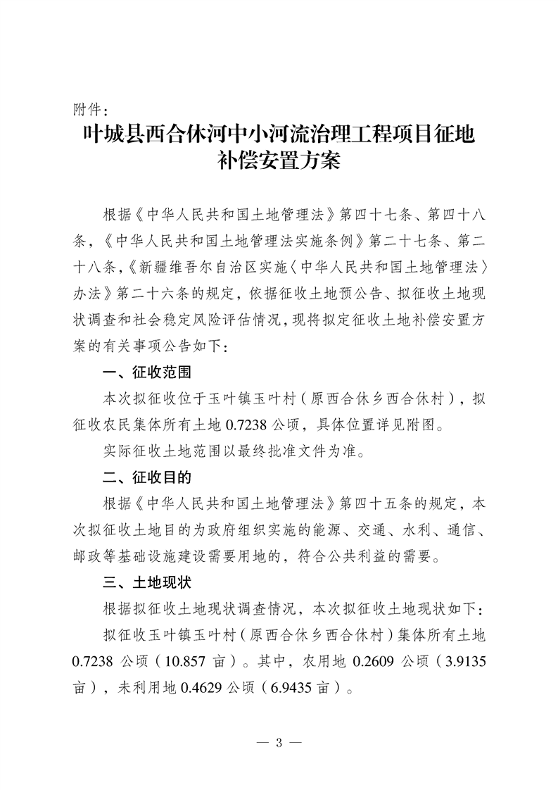 叶城县西合休河中小河流治理工程项目征地补偿