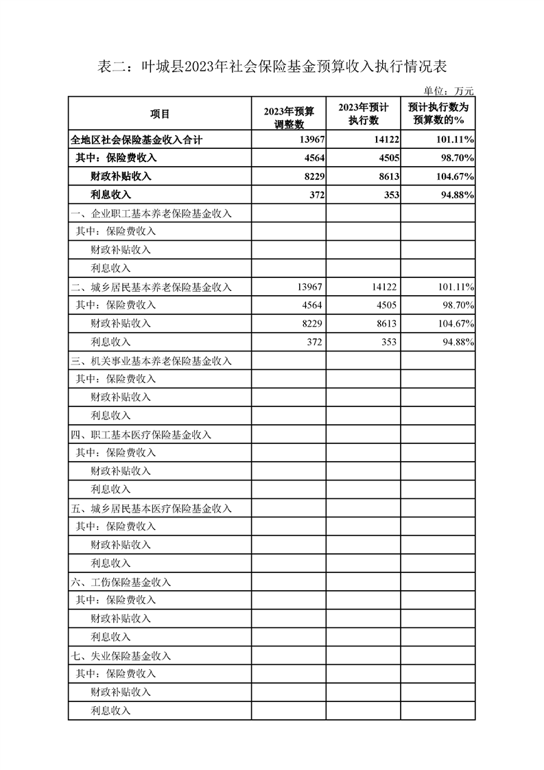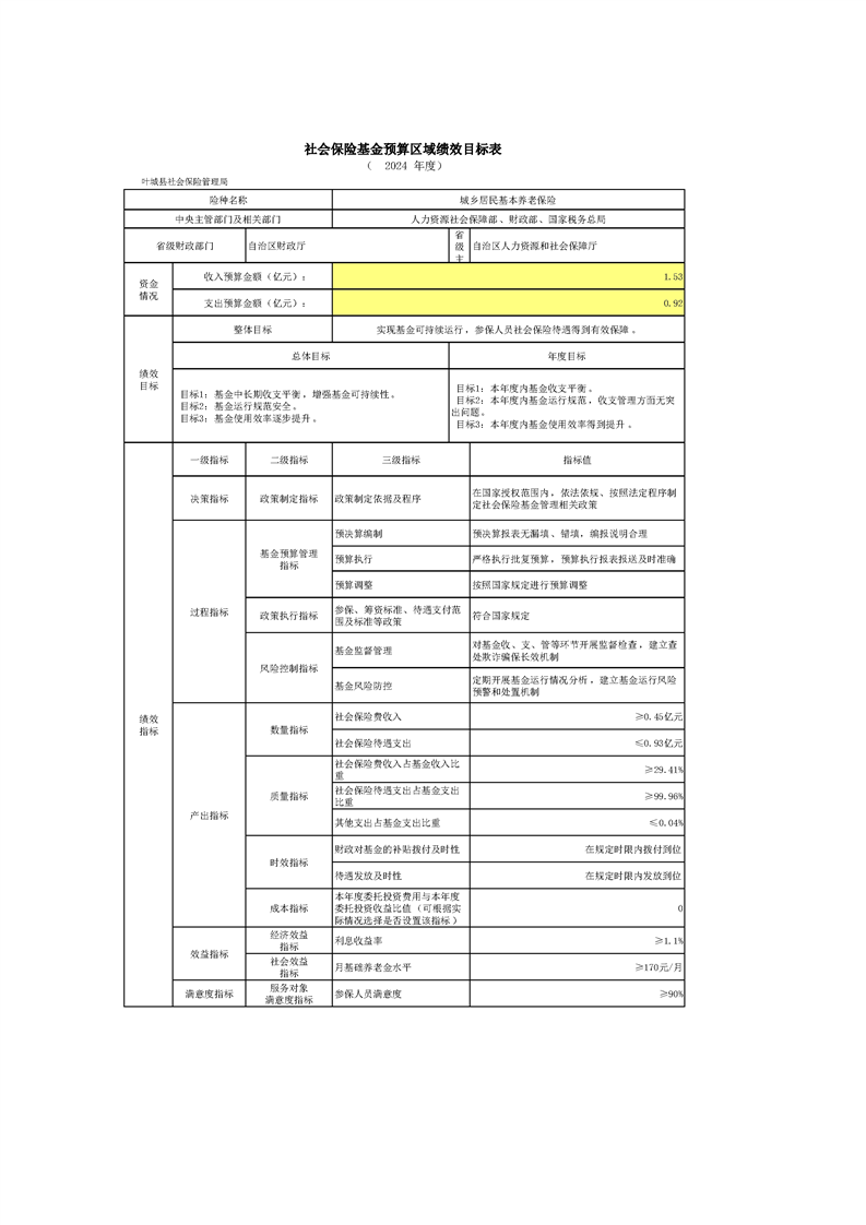 叶城县2024年社会保险基金预算公开