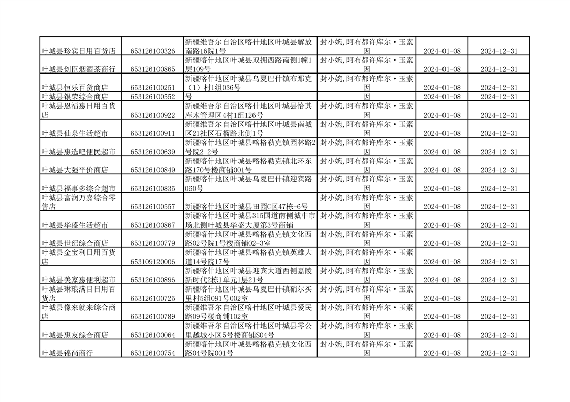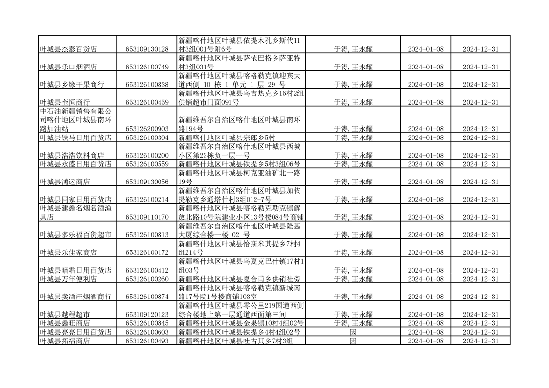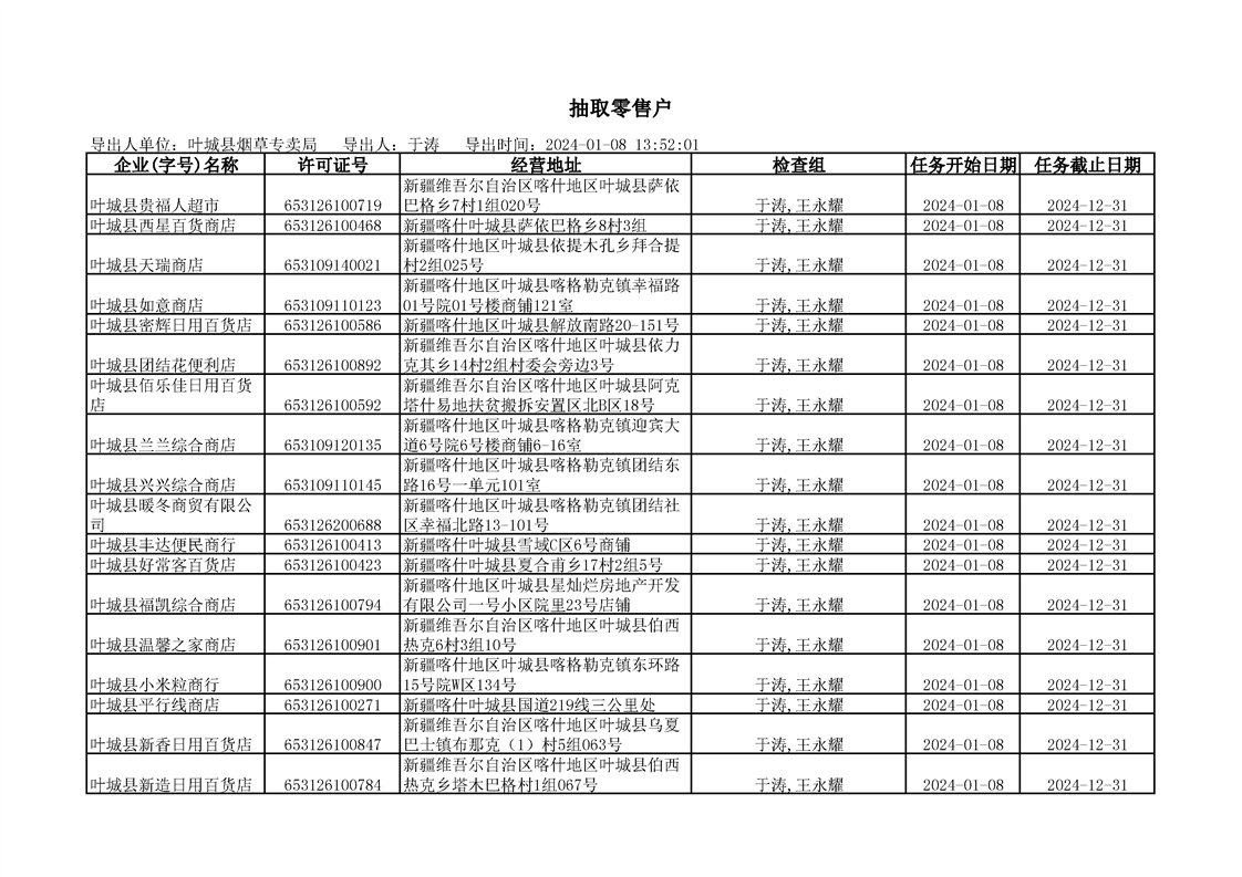 叶城县烟草专卖局2024年度“双随机、一公开”检查清单