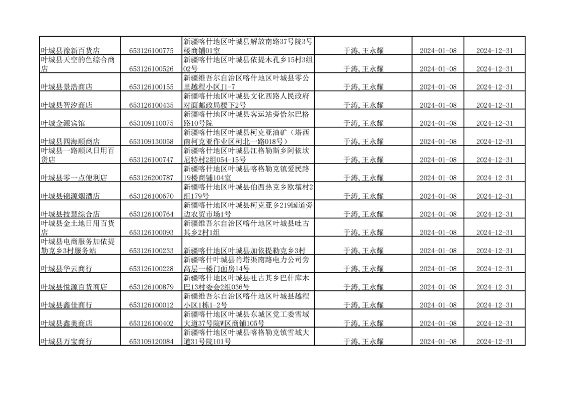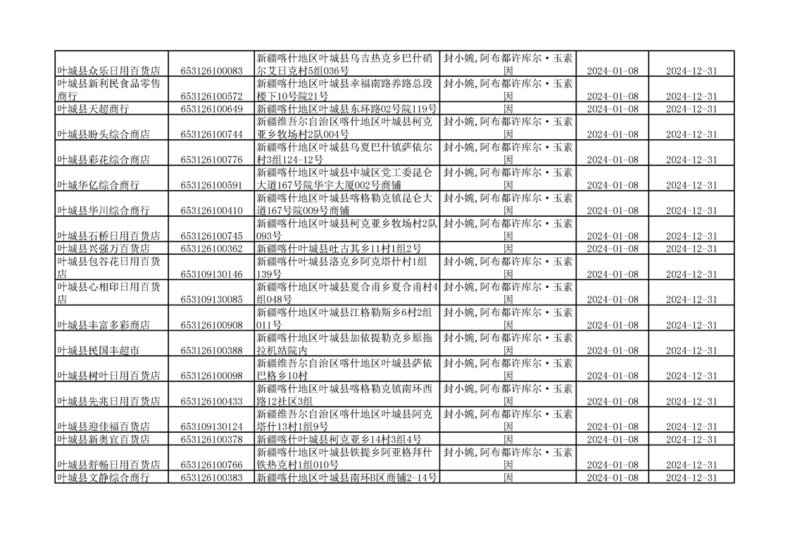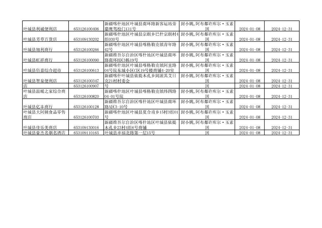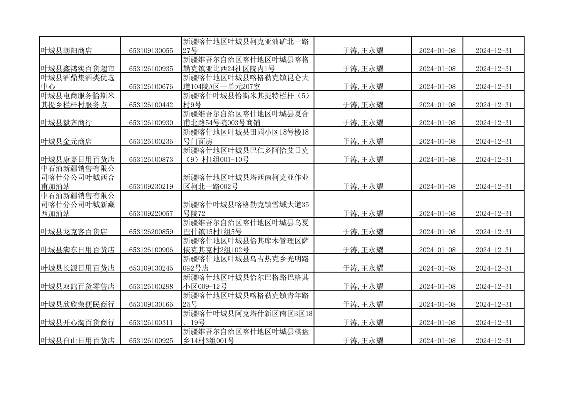叶城县烟草专卖局2024年度“双随机、一公开”检查清单