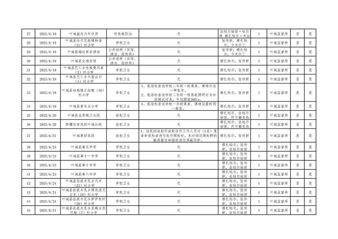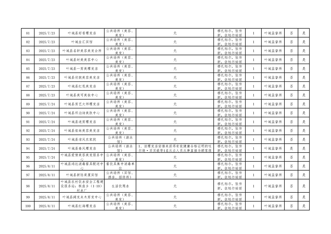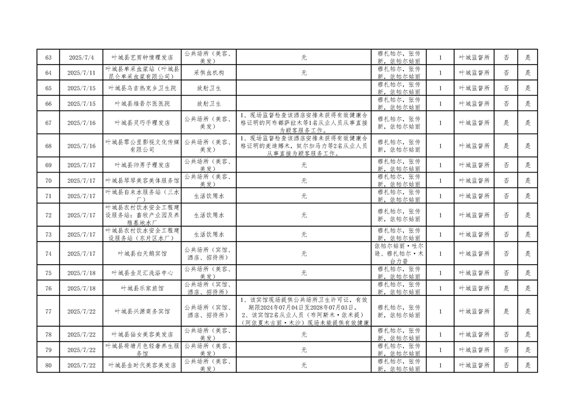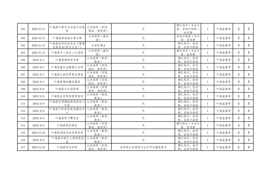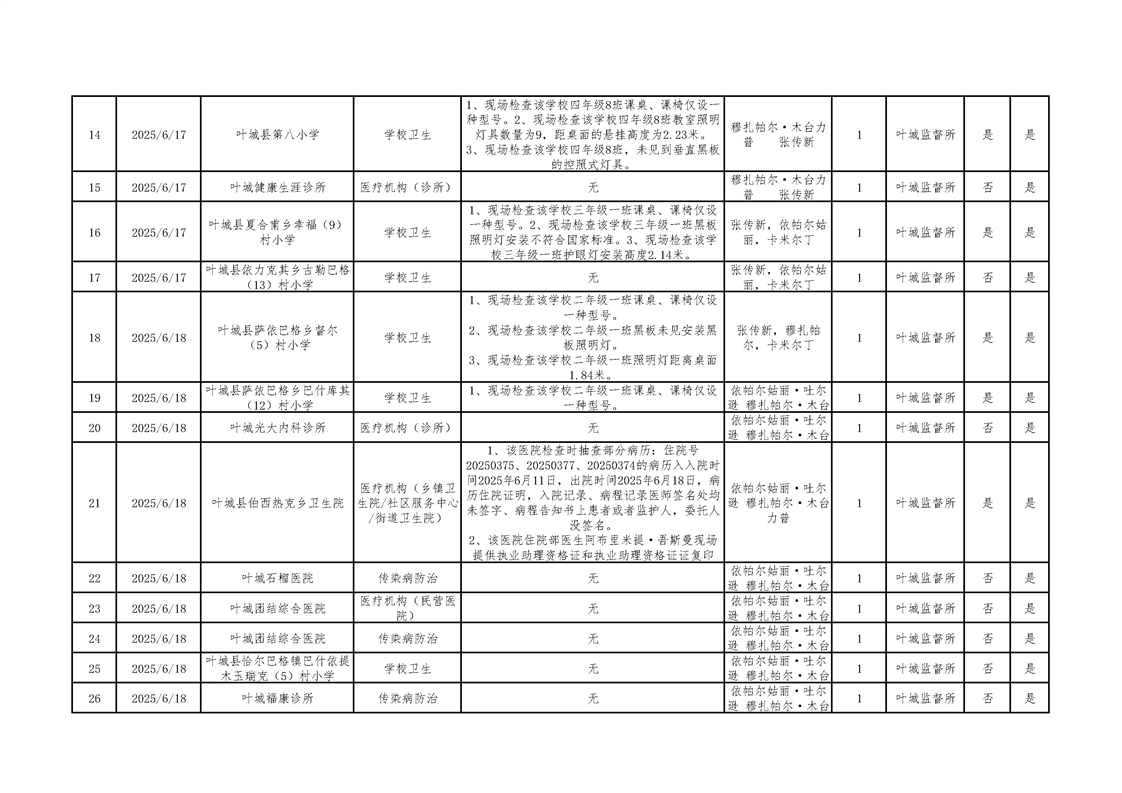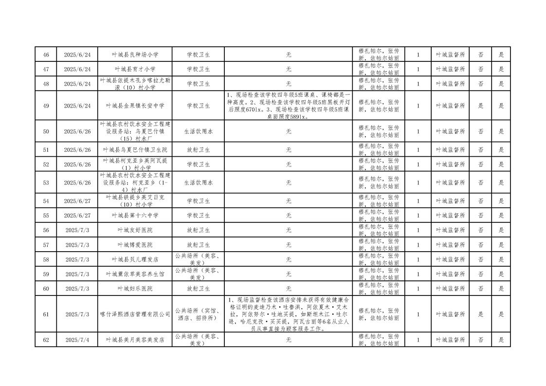 叶城县2025年卫生监督“双随机、一公开”检查台账
