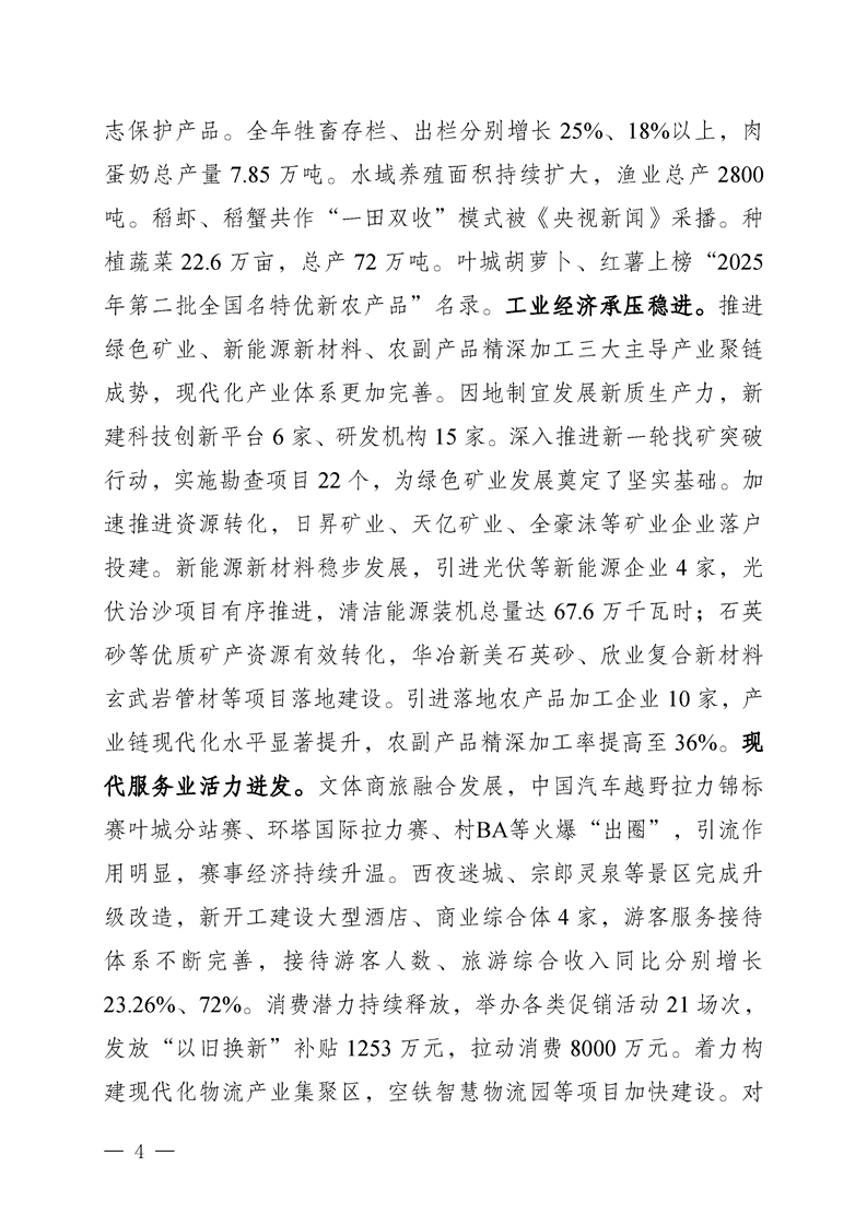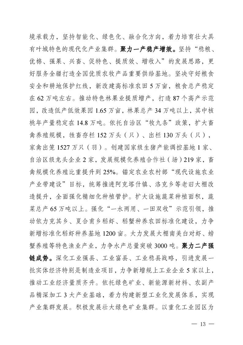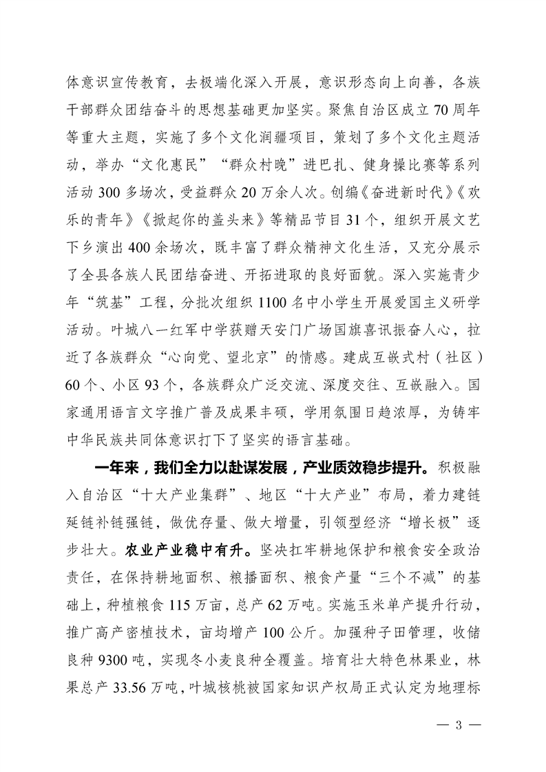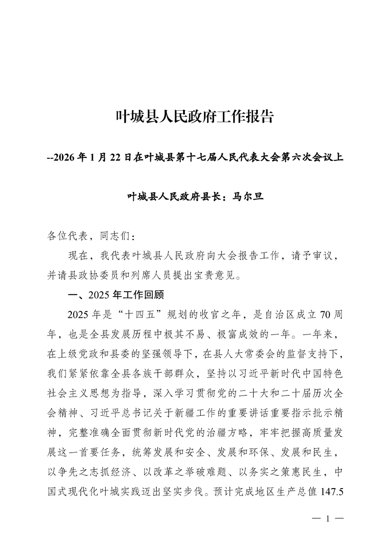 叶城县2025年人民政府工作报告