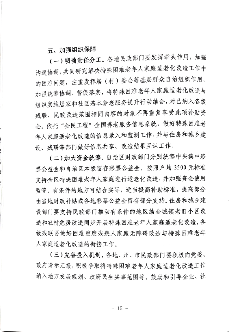 自治区推进“十四五”特殊困难老年人家庭适老化改造工作实施方案