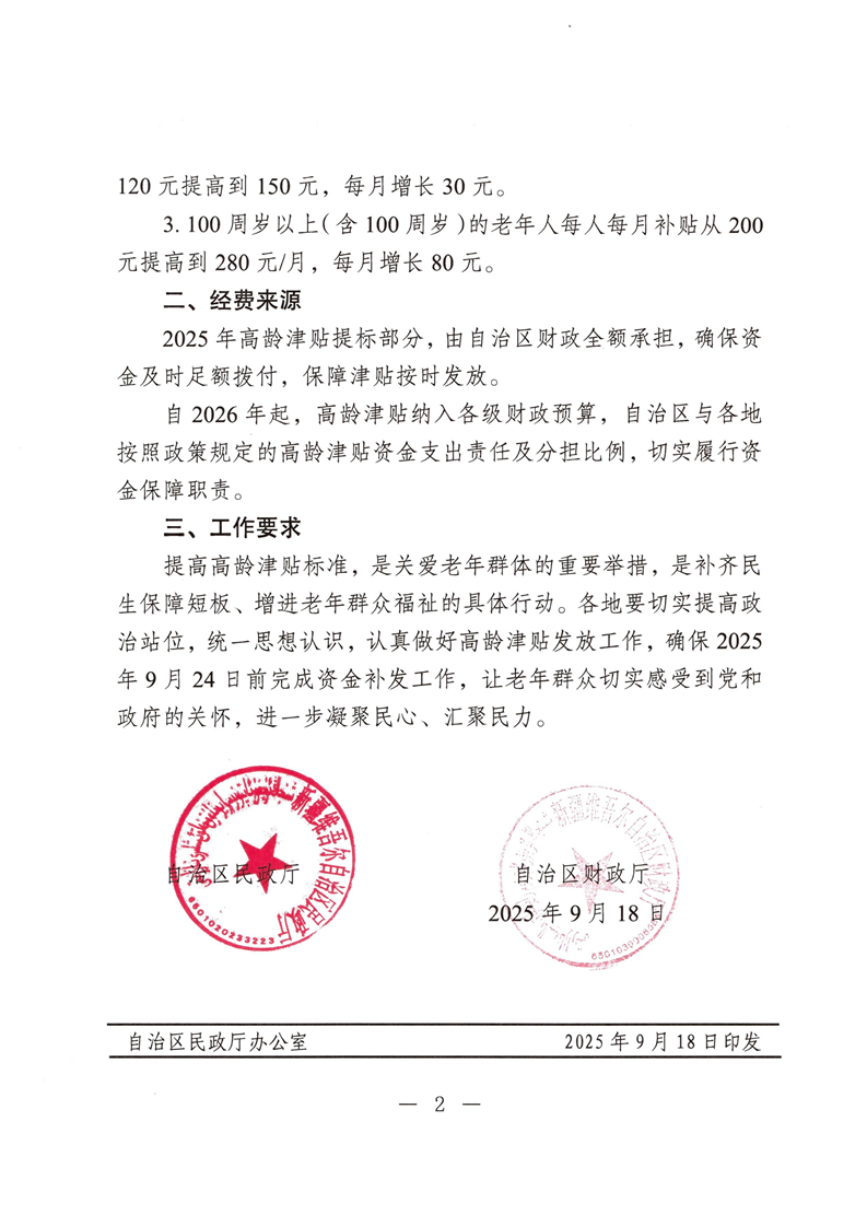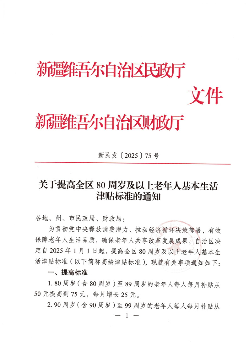 关于提高全区80周岁及以上老年人基本生活津贴标准的通知
