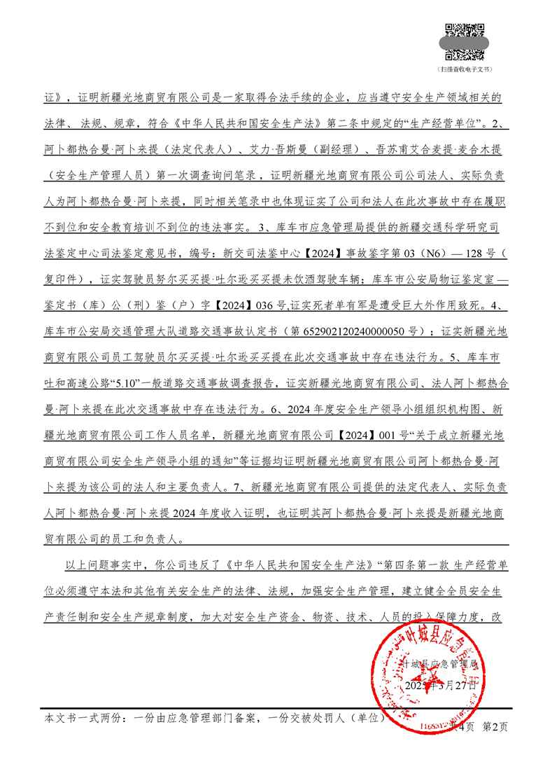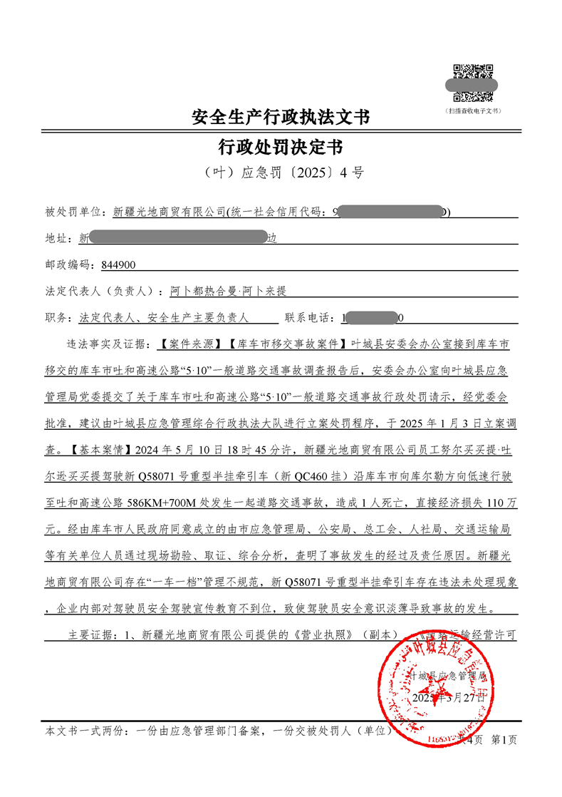 (叶)应急罚〔2025〕4 号 叶城县安全生产行政处罚决定书