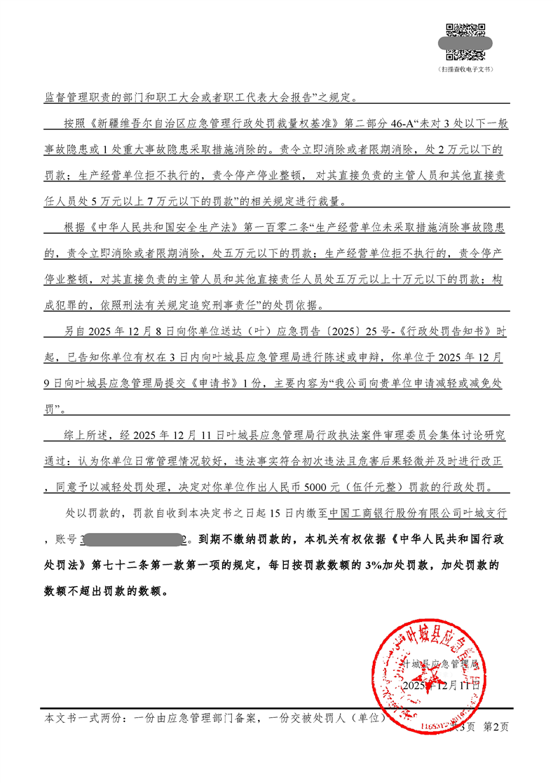 (叶)应急罚〔2025〕25号 叶城县安全生产行政执法决定书