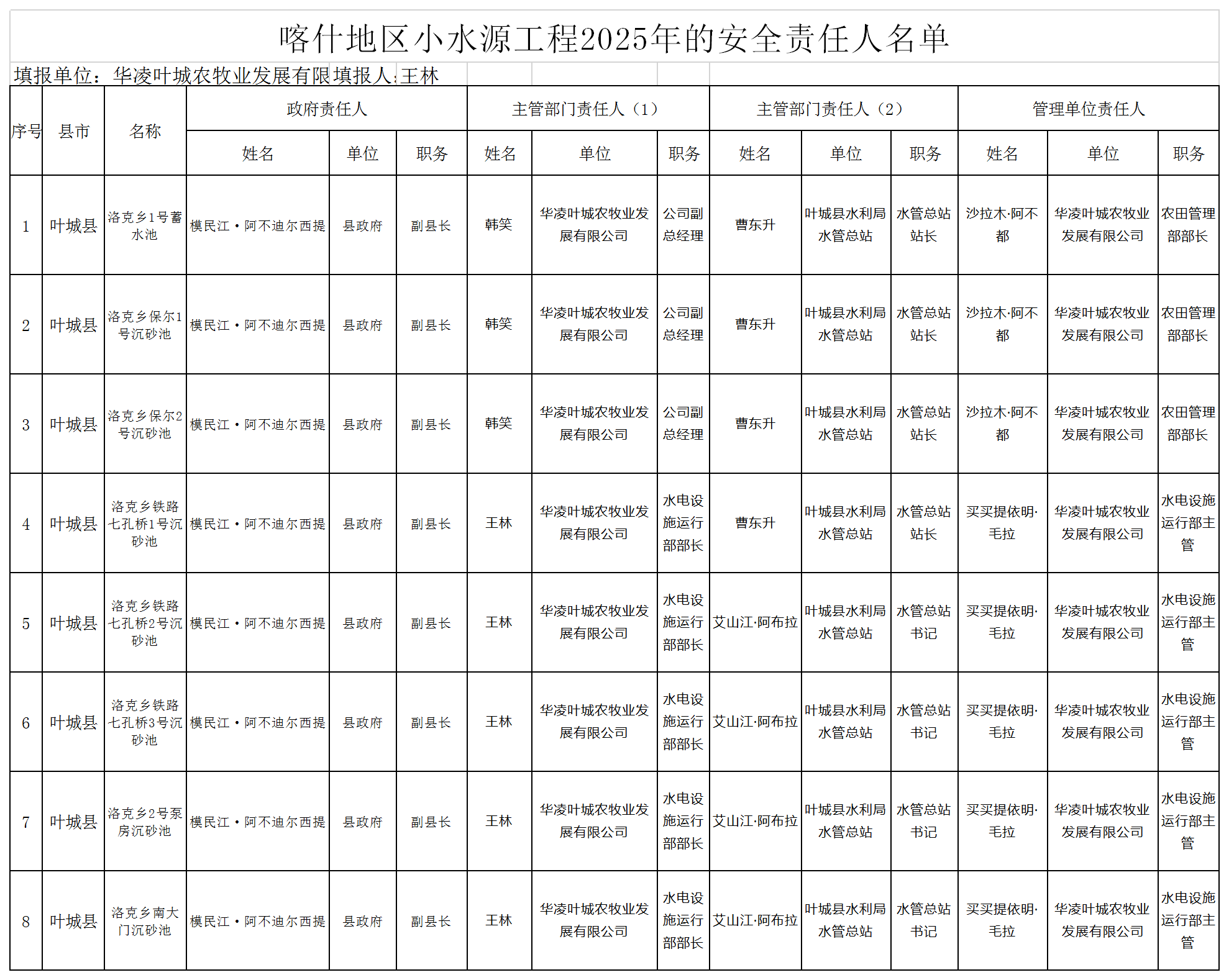 二、华凌叶城农牧业发展有限公司8座小型水源工程“三个责任人”职责分工