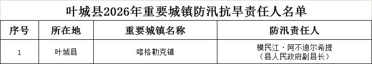 叶城县2026年重要城镇防汛抗旱责任人名单