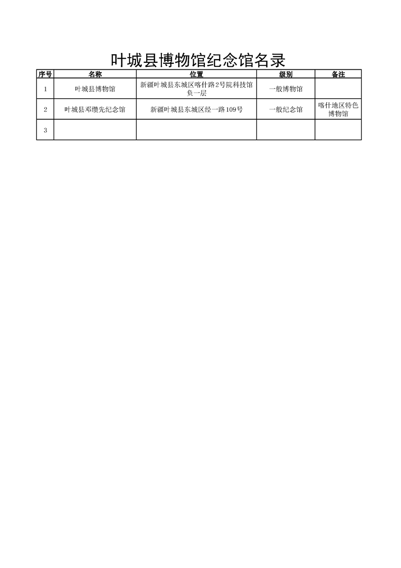 叶城县博物馆纪念馆名录