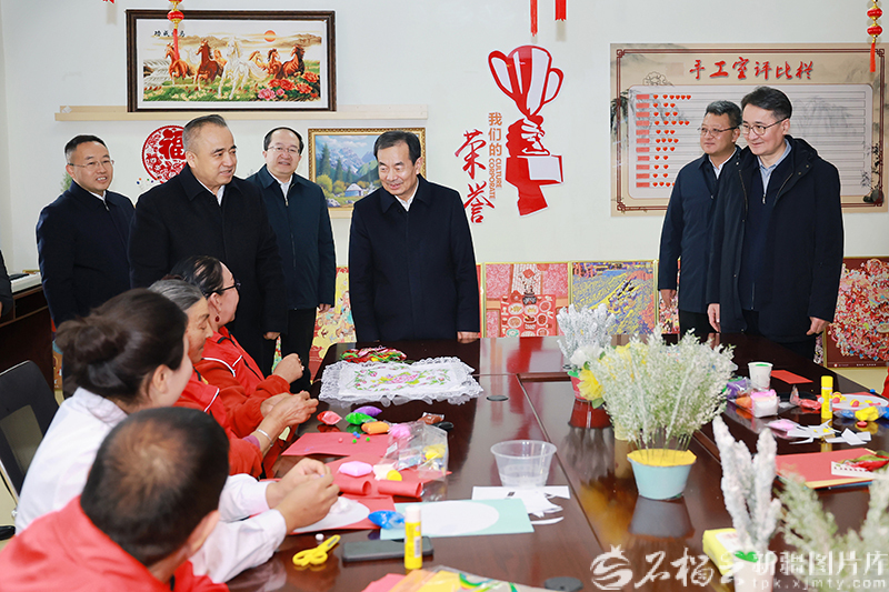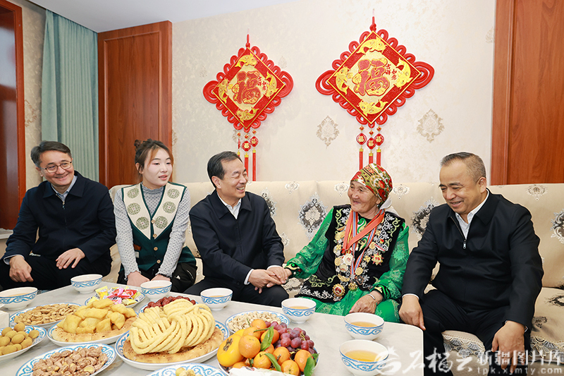 2月14日,自治区党委书记陈小江、自治区主席艾尔肯·吐尼亚孜在阿图什市中心敬老院,为各族老年人送上新春祝福。石榴云/新疆日报记者崔志坚摄