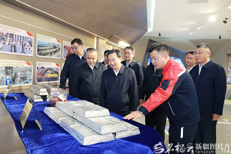 3月25日,自治区党委书记陈小江、自治区主席艾尔肯·吐尼亚孜在位于洛浦县的和田昆冈经济技术开发区,实地了解新疆昆仑锌业有限责任公司生产运营情况。石榴云/新疆日报记者崔志坚摄