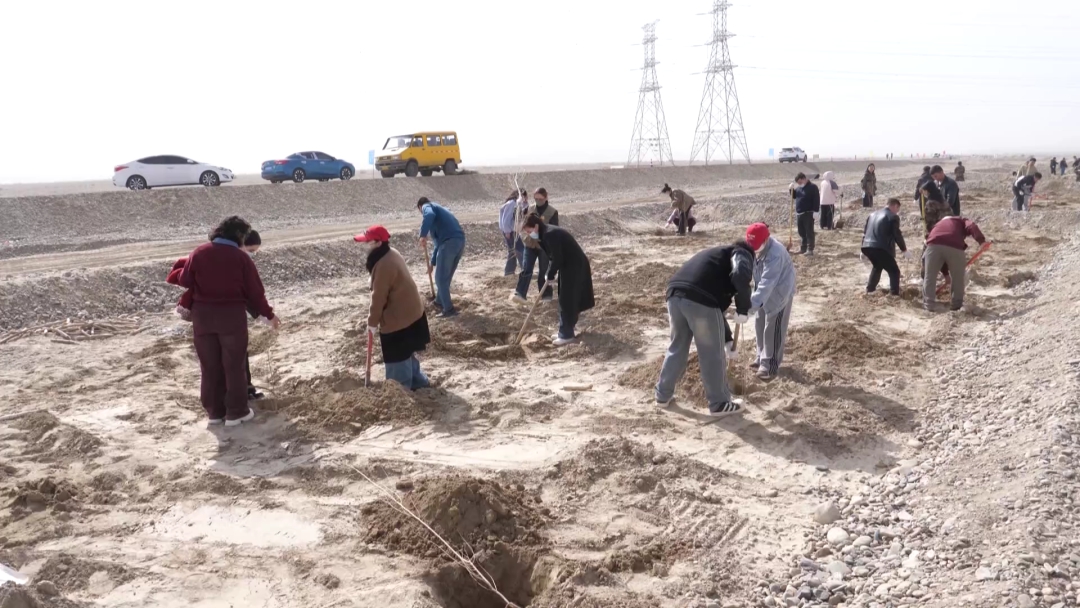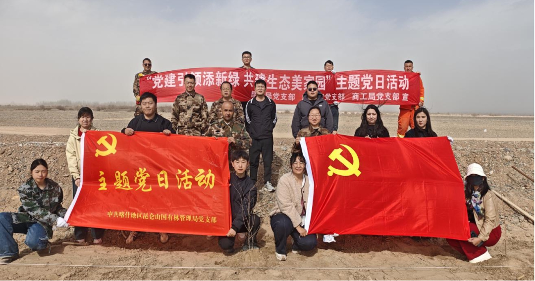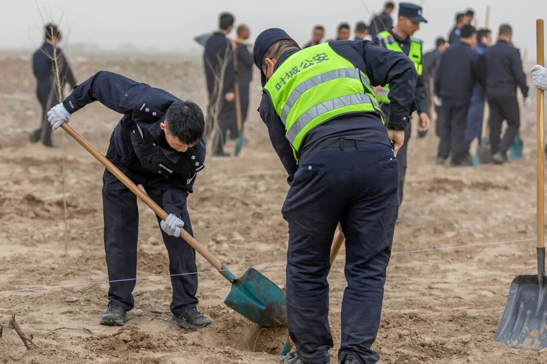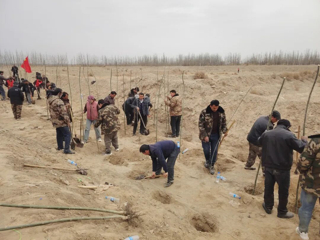 县直各单位积极响应号召,县公安局组织民辅警前往戈壁边缘植树点,以“藏蓝”担当守护绿水青山,民警何勇表示,既要守护一方平安,也要守护生态家园;地区昆仑山国有林管理局党支部携手县委统战部党支部,开展“党建红引领生态绿同心治沙植绿践初心”主题党日活动,投身塔克拉玛干沙漠锁边治理一线,凝聚党建共建协同攻坚合力。