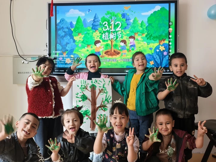 校园内,生态文明的种子悄然生根发芽。第七小学、第十五中学组织师生开展植树实践与主题班会,通过劳动体验、课堂互动,引导学生树立环保意识;第十幼儿园、第十六幼儿园、依提木孔镇中心幼儿园、蓝天幼儿园开展“萌娃植绿”系列活动,通过绘画、浇水、诵儿歌等形式,让孩子们在实践中感受自然之美,培养爱护环境的美好品质。
