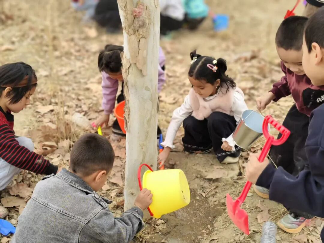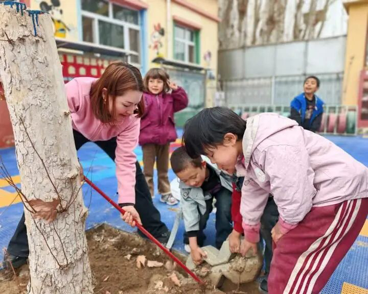 依提木孔乡幼儿园老师带领孩子们开展萌娃植绿活动