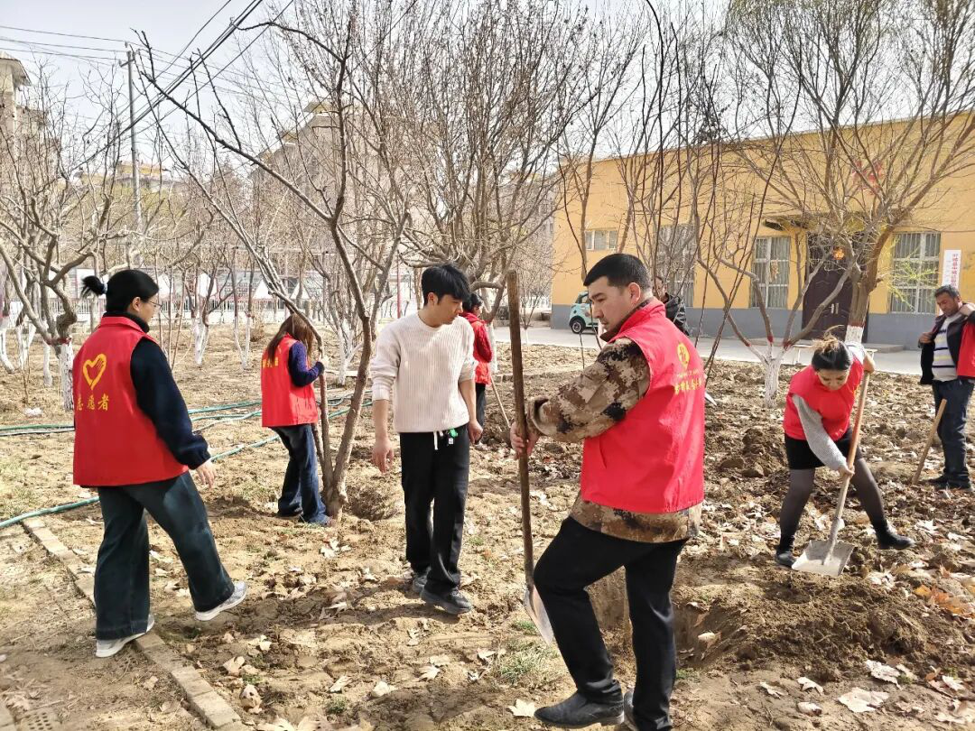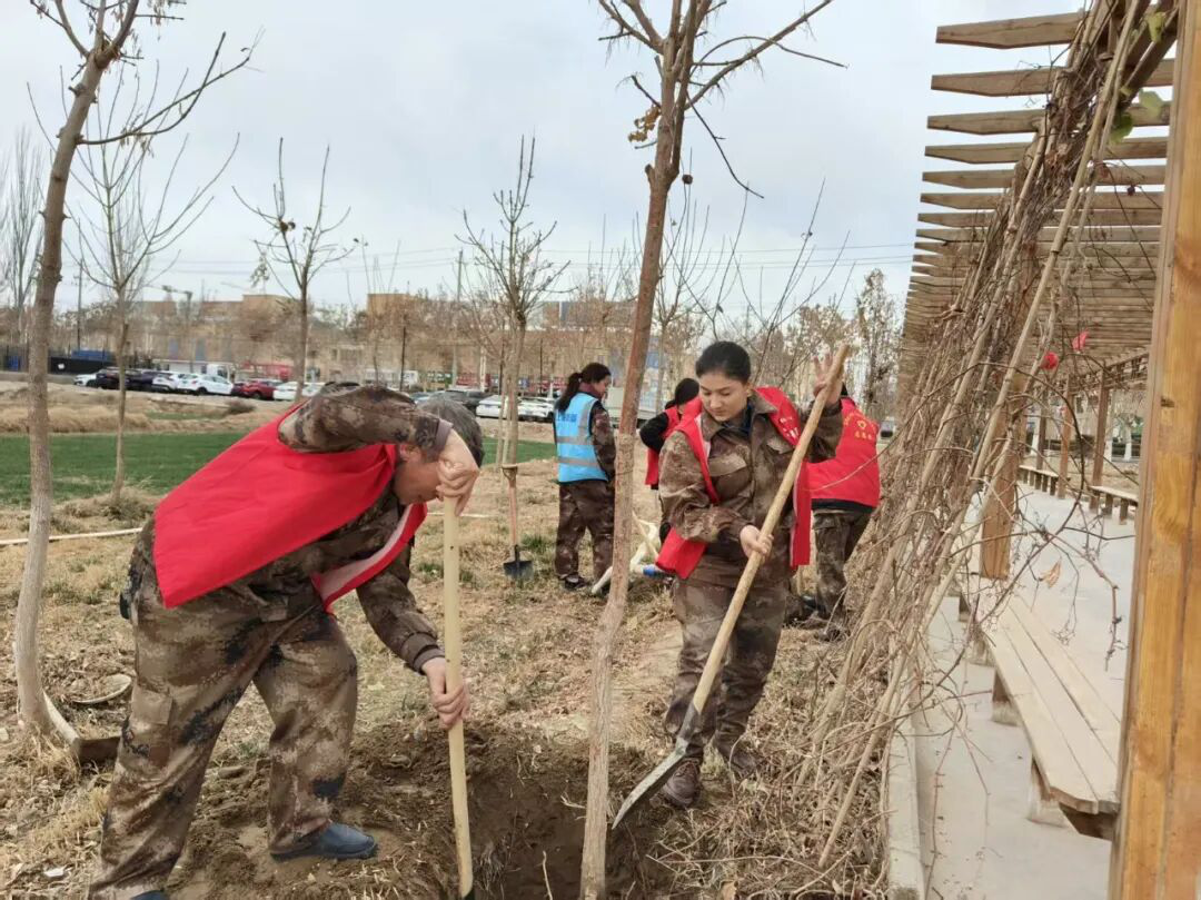 社区志愿服务温暖人心,中城区田园社区、火车站社区组织党员、志愿者身着红马甲,开展春季植树志愿服务,改善辖区绿化环境,传递文明风尚;新疆轻工职业技术学院驻依力克其乡夏玛勒巴格村工作队与村“两委”开展主题党日活动,以植树造林助力乡村生态振兴。