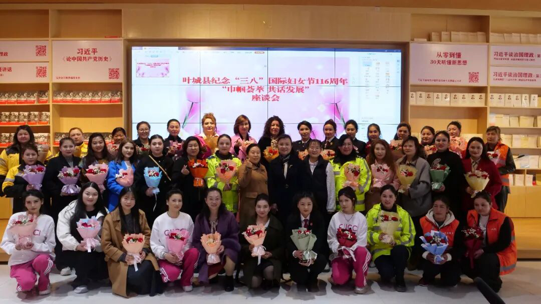 3月7日,叶城县在新时代文明实践中心召开纪念“三八”国际妇女节116周年“巾帼荟萃共话发展”座谈会。来自各行各业的优秀妇女代表欢聚一堂,共叙巾帼情怀,共商妇女事业发展。县委常委、宣传部部长玛丽艳•木沙参加并讲话,向全县广大妇女同胞致以节日的祝福和诚挚的问候。人民政府副县长任欢欢主持座谈会。