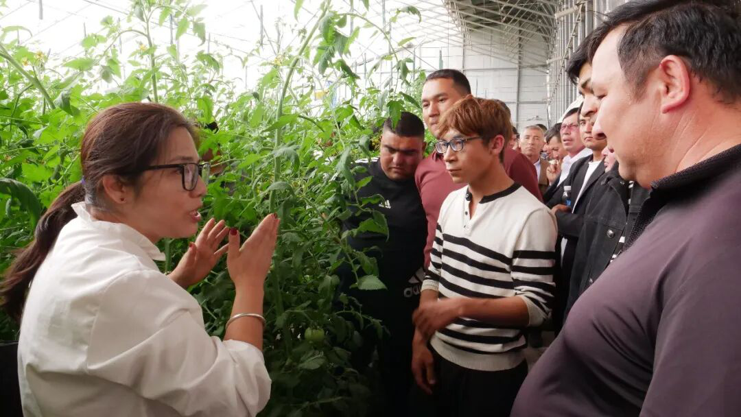 此次培训既有集中理论学习,也注重实地实践锤炼。当天下午,大家把课堂搬到田间地头,前往洛克乡现场学习设施蔬菜高效栽培技术。喀什地区瓜果蔬菜产业发展中心高级农艺师周桂花围绕栽培管理、病虫害绿色防控等内容进行实操授课,通过现场讲解、示范指导,让学员在实践中提升技术服务能力。