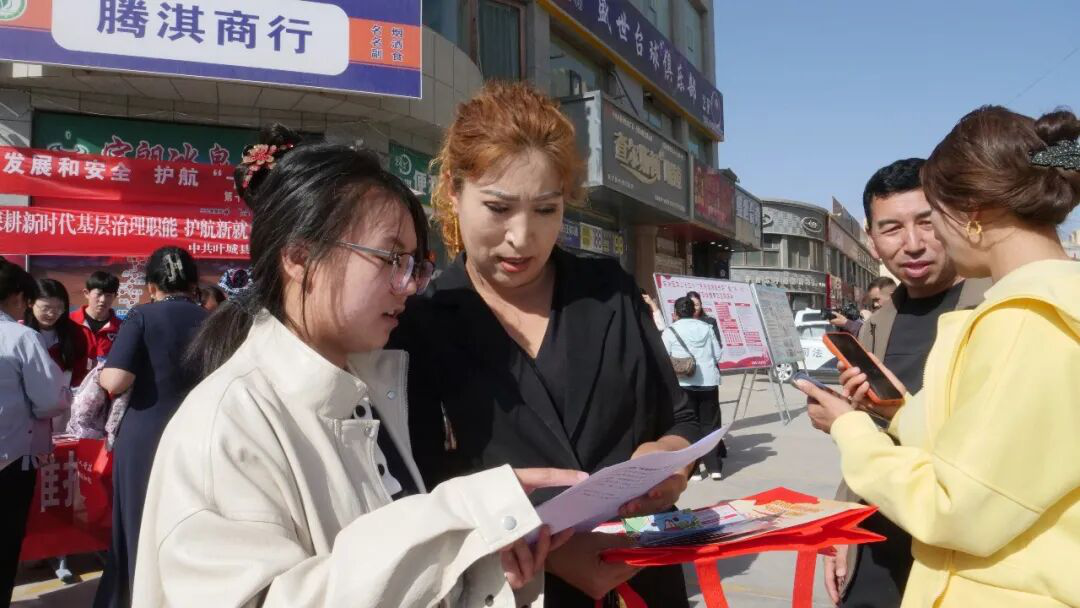 活动现场,各单位通过悬挂宣传横幅、摆放普法展板、开展双语宣讲、发放宣传资料等多种形式,重点对《中华人民共和国宪法》《新疆维吾尔自治区矛盾纠纷多元化解条例》等法律法规进行解读。宣传人员还深入沿街商铺,面向小区居民、商户及新就业群体,面对面讲解婚姻家庭、劳动维权、防范非法集资等与群众生活息息相关的法律知识,并在现场提供免费法律咨询服务。
